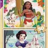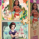 So sadou drevených puzzle DISNEY PRINCEZNÉ získate hneď dve krásne skladačky s motívmi VAIANA a SNEHULIENKA. Vďaka veľkým, pevným dielikom sa deťom skvele držia a skladajú. Prírodný drevený materiál je odolný, príjemný na dotyk a vhodný na každodenné hranie.
