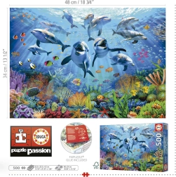 EDUCA Puzzle Zábava pod hladinou o veľkosti 500 dielikov predstavuje fascinujúci obraz morského života. Toto puzzle je skvelou voľbou pre všetkých milovníkov podmorského sveta. Je ideálne pre všetkých, ktorí chcú stráviť kvalitný čas skladaním a relaxáciou.