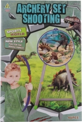 Plastová sada luku so šípmi ponúka zábavu pre všetkých malých dobrodruhov. Obsahuje okrúhly plastový terč s fascinujúcimi obrázkami dinosaurov.