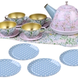 Sada je vyrobená z kovu, skvele imituje skutočný jedálenský a kávový servis. Čajová a kávová súprava poskytne skvelú zábavu spojenú s učením.