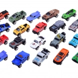 Veľká sada 20 kovových autíčok poteší malých zberateľov aj milovníkov pretekov. Modely majú kovovú karosériu na plastovom podvozku, zahŕňajú terénne autá a pick-upy s detailným spracovaním a pútavou grafikou. Každý model meria približne 7,5–8 cm na dĺžku.