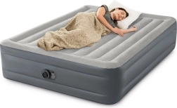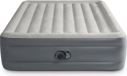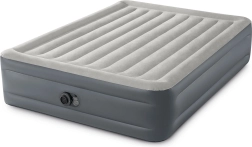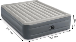 Prémiová nafukovacia posteľ INTEX je ideálna pre hostí, domáce použitie aj kempovanie. Zvýšená konštrukcia s výškou 46 cm uľahčuje vstávanie, zatiaľ čo odolné PVC s vodoodolným velúrovým povrchom zaručuje komfort a dlhú životnosť. Vstavaná pumpa na 220–240 V pripraví lôžko na použitie približne za 250 sekúnd.