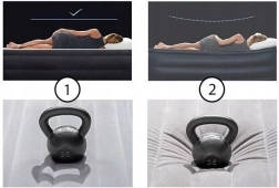 Integrovaná pumpa na 220–240 V nafúkne matrac približne za 250 sekúnd a rovnako rýchlo ju pomôže vyfúknuť. Jednoduchá a pohodlná obsluha bez externého kompresora.