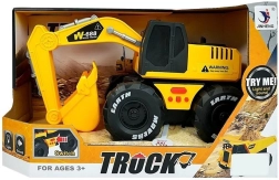 Predné svetlá svietia a tlačidlá aktivujú klaksón, zvuk cúvania a ďalšie efekty, ktoré priblížia skutočnú prevádzku na stavbe.
