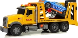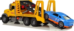 Realistické odťahové vozidlo s rampou prináša deťom akčné záchranné misie. Ponúka svetelné a zvukové efekty, manuálne ovládanú rampu a frikčný pohon pre plynulú jazdu. V balení je aj modré pretekárske autíčko, ktoré možno naložiť a odviezť do „detského servisu“. Ideálna hračka pre malých fanúšikov áut od 3 rokov.
