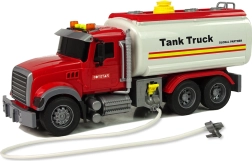 Ďalšie funkcie, ako sú zvukové a svetelné efekty, dodajú celej zábave efekt a realistickosť. Výstražné klaksóny na hornej strane signalizujú pohyb, tlačidlá na hornej strane sú zodpovedné za zvuky – klaksón, štartovanie motora, cúvanie. Vďaka červeno-bielemu farebnému prevedeniu bude auto viditeľné už z diaľky. Cisterna má trecí pohon zadnej nápravy push-pull, stačí zatlačiť na zadnú časť, pustiť dopredu a užívať si rýchlosť.