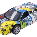 Štýlové kovové autíčko s originálnym graffiti dizajnom poteší malých aj veľkých zberateľov. Kompaktná veľkosť 9 cm, spätný natahovací pohon a 3 rôzne varianty z neho robia skvelú voľbu na zábavu aj do zbierky.
