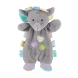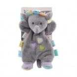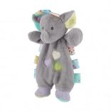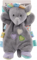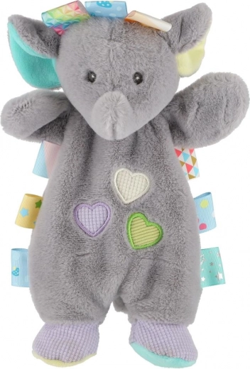 Táto hebká maznacia hračka v tvare sloníka kombinuje komfort a podnetnú hru. Mäkučký plyš, pastelové detaily a viac farebných štítkov po okrajoch lákajú k uchopeniu a ohmatávaniu, čím podporujú jemnú motoriku a senzorický rozvoj detí už od narodenia.