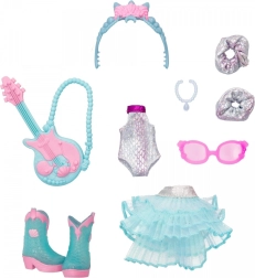 Stella je nielen štýlovo oblečená, ale aj pripravená na hudobné vystúpenie so svojou gitarou a doplnkami vrátane slnečných okuliarov. Dovoľte deťom hrať sa na populárnych hudobníkov a inšpirovať sa touto kreatívnou sadou.
