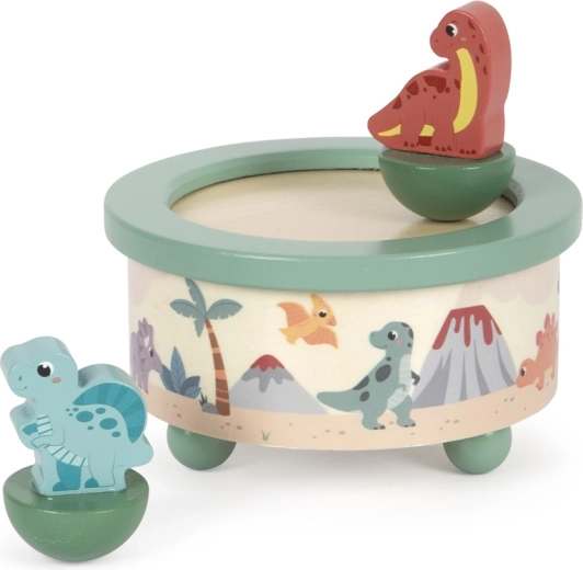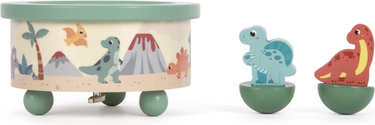 Táto klasická hracia skrinka je ideálnym doplnkom do detskej izby. Vďaka roztomilým dinosaurom a príjemnej melódii upúta pozornosť každého dieťaťa. Figúrky dinosaurov sú umiestnené na vrchu skrinky pomocou magnetu a pri hraní melódie sa otáčajú, čím vytvárajú úchvatnú podívanú pre všetkých malých obdivovateľov prehistorických tvorov. Drevené hračky z tejto kolekcie rozvíjajú detskú kreativitu, motorické zručnosti a inšpirujú k učeniu sa o prírode a histórii. Hracia skrinka s dinosaurami podporuje lásku k hudbe a je skvelou hrou pre rozvoj predstavivosti.