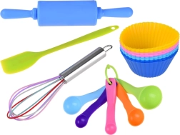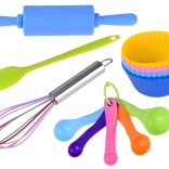 Zahŕňa valček, metličku, špachtlu, formičky na sušienky a muffiny a ďalšie užitočné doplnky pre zábavu pri pečení.