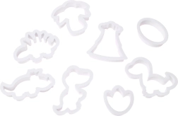 Súprava obsahuje formičky v tvare dinosaurov, stromu a sopky, ktoré prinášajú kreatívne možnosti pri pečení s deťmi.