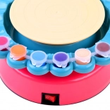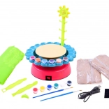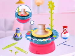 Keramická dielňa je vynikajúci nápad na darček pre deti, ktoré rady kreatívne trávia čas. Hračka je ideálna pre všetkých, ktorí majú radi manuálnu prácu a neboja sa trochu zašpiniť. Pomocou tohto úžasného stroja môžete vykúzliť zaujímavé veci z hliny (napr. vázy, džbány, kvetináče, taniere, hrnčeky) a pomocou plastových nožov, špachtlí a farieb ich pozdobiť. Ochranná zástera je určená na zabránenie nadmernému znečisteniu malého umelca.