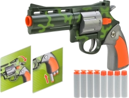 Sada obsahuje kompaktnú pištoľ so vzorom v kamufláži, ktorá sa pohodlne drží v jednej ruke. Náboje z peny a mäkkej gumy zabezpečujú maximálnu bezpečnosť a ľahkosť. Sada obsahuje 6 nábojov.