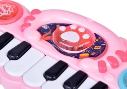 Táto farebná hudobná hračka kombinuje zábavu a učenie: klávesy hrajú základné tóny, špeciálne tlačidlá spúšťajú bicie zvuky a veselé melódie, zatiaľ čo svetielka na paneli vizuálne reagujú na každé stlačenie. Deti si precvičia sluch, zrak aj dotyk a zároveň rozvíjajú jemnú motoriku.