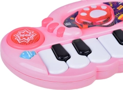 Podsvietené tlačidlá spúšťajú bicie zvuky, tlačidlo s rybičkou prehráva krátke veselé melódie a čiernobiele klávesy hrajú základné tóny – ideálna kombinácia na prvé hudobné krôčiky.