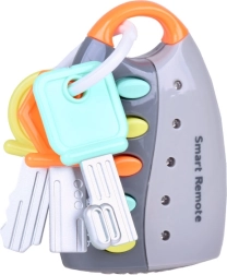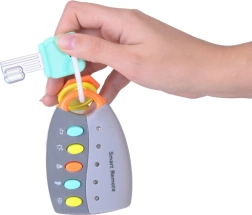 Deti milujú napodobňovať dospelých – a s týmito interaktívnymi kľúčmi si užijú veľa bezpečnej a podnetnej zábavy. Diaľkový ovládač s farebnými tlačidlami prehráva veselé melódie aj autentické zvuky auta, ktoré dopĺňajú blikajúce svetielka. Hračka je ľahká, príjemná do ruky a ľahko sa čistí.