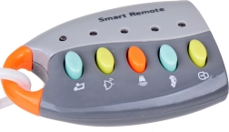 - Zvukové funkcie: tlačidlo s notou (veselé melódie), so zvončekom (zvuk zvončeka), s klaksónom, tlačidlo auta (štart motora), tlačidlo zámku (zamknutie/odomknutie).