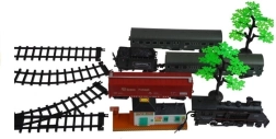 Súčasťou je lokomotíva, nákladný vozeň, tri menšie vozne, stanica, dva stromy, koľaje a dávkovač na vodu pre efekt dymu. Stačí vložiť 4 batérie AA (nie sú súčasťou) do nákladného vozňa, prepojiť s lokomotívou a po krátkom nahriatí výhrevného telieska vyraziť na trať.