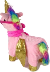 Ružový jednorožec s farebnou hrivou a zlatými krídlami poteší každé dieťa.