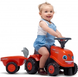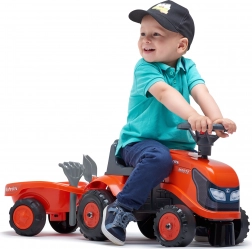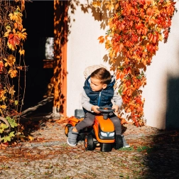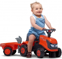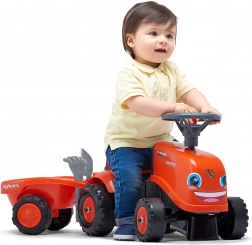 Naštartujte fantáziu malého farmára s jazdeckým traktorom KUBOTA. Precízne spracovanie, kvalitné plastové kolesá a otočná predná náprava zabezpečujú jednoduché riadenie a dlhú životnosť. Vďaka odpojiteľnému prívesu si deti odvezú svoje poklady kamkoľvek.