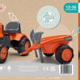 Súčasťou balenia sú aj hrabličky a lopatka na hranie na záhrade. Dieťa si môže zvoliť vzhľad traktora pomocou dvoch sád samolepiek – veselá tvár alebo klasický štýl. Klaksón vo volante poteší každého malého vodiča.