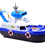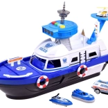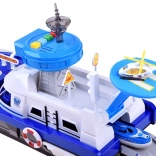 Tento detailne spracovaný policajný čln v bielo‑modrej kombinácii je pripravený na každú misiu – na vode, na súši aj vo vzduchu. Na palube nájdete heliport s vrtuľníkom, riadiacu vežu so svetelnými a zvukovými efektmi a vnútorný úložný priestor na prepravu vozidiel. Otvárací kokpit s kormidlom a postavičkou kapitána umocní realizmus hry.