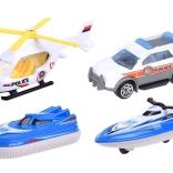 Súčasťou setu sú aj policajná dodávka, skúter a vznášadlo, ktoré možno ľahko vyjsť po rampe. Vďaka voľne sa otáčajúcim kolieskam na vozidlách a prepracovaným detailom je hranie plynulé a zábavné. Set dopĺňajú dráhy pre vozidlá, značky, kotva a ďalšie doplnky na vytváranie vlastných príbehov.