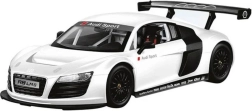 Užite si rýchlu a plynulú jazdu s licencovaným modelom AUDI R8 LMS v elegantnej bielej farbe. Tmavo tónované okná, detailná karoséria a výrazné krídlo podčiarkujú autentický vzhľad pretekárskeho vozidla. Gumené kolesá sa postarajú o istotu na hladkom aj mierne nerovnom povrchu.