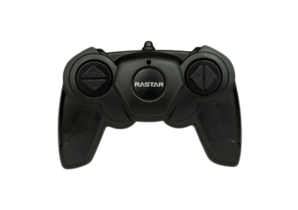 Čierny plastový diaľkový ovládač značky Rastar je ergonomicky navrhnutý pre pohodlný úchop a lepší herný zážitok.
