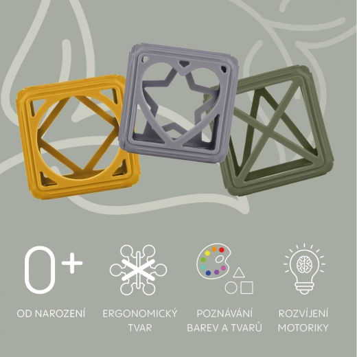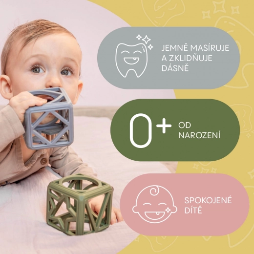 Pomôžte svojmu bábätku prekonať náročné obdobie prerezávania zúbkov so silikónovým hryzadlom Square. Jeho jedinečný geometrický tvar skvele padne do malých ručičiek a ponúka účinnú masáž ďasien, ktorá zmierňuje nepríjemné pocity pri prerezávaní zúbkov.