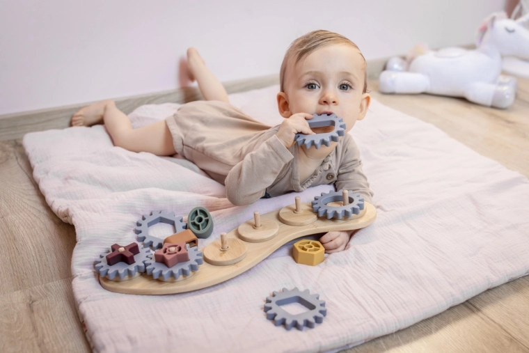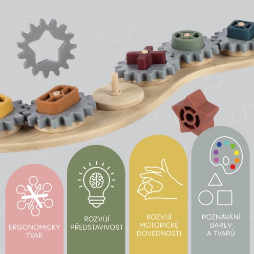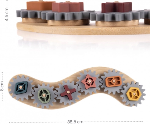 Objavte kúzlo učenia s našou bambusovo-silikónovou skladačkou, ktorá prepája zábavu s poznaním. Farebné ozubené kolieska rozvíjajú jemnú motoriku, logické myslenie a predstavivosť vášho dieťaťa. Kombinácia prírodného bambusu a bezpečného silikónu poskytuje príjemný senzorický zážitok a podporuje prirodzené objavovanie sveta mechaniky.