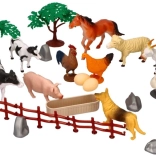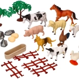 Set obsahuje plastové zvieratá v rôznych veľkostiach, vrátane kráv, koní, oviec, sliepok, stromov a ďalších doplnkov ako plotov, kameňov a vajec, ktoré zaisťujú vzdelávací a kreatívny rozvoj.