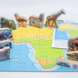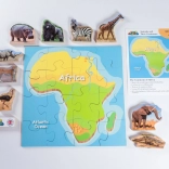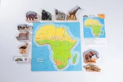 Drevené puzzle Afrika a jej zvieratá spája zábavu a vzdelávanie v jednom balení. Pomáha deťom objavovať faunu Afriky vďaka farebným, voľne stojacim zvieratkám a detailnej mape.