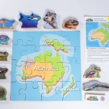 Ponorte sa do fascinujúceho sveta austrálskej fauny s dreveným puzzle, ktoré obsahuje 16 dielikov mapy a 10 voľne stojacich zvierat. Puzzle je vyrobené z kvalitného MDF materiálu, čo zaisťuje jeho dlhú životnosť a bezpečnosť pre deti. Zvieratá sú realisticky vyobrazené, čo podporuje predstavivosť a vizuálne porozumenie.