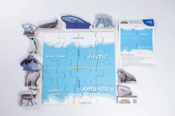 Táto vzdelávacia sada od značky Just Jigsaws učí deti o polárnych oblastiach hravou formou. Najprv poskladajú mapu zo 16 pevných dielikov a potom priraďujú a pomenúvajú 10 zvierat, ktoré v týchto oblastiach žijú. Realistické ilustrácie a stabilné vyhotovenie figúrok z MDF zaručujú skvelý vizuálny zážitok aj odolnosť pri častom používaní.