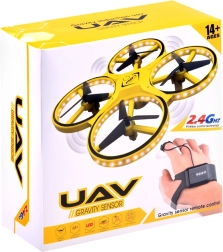 Kvadrikoptéra UAV Gravity Sensor -je zábavná ponuka pre deti malé a staršie, ktoré majú rady lietajúce hračky. Plne dron je vyrobený z plastu, s fantastickým LED osvetlením, ktoré skvele predstavuje v tme. Dron sa ovláda pomocou špeciálneho diaľkového ovládania, ktoré je pripevnené ako hodinky. Ovláda sa pomocou rúk, gesta hračka má široké možnosti manévrovania, stačí jemný pohyb rúk zmeniť smer letu, doprava doľava, hore dole. Po vypustení zostáva vo vzduchu a otáča sa kolem svojej osi o 360 stupňov. Pásik má byť nosený na rúke, posuvný cez medzi palcom a prstom s gombíkom na ukazováku Silikónový remienok má 12-stupňové nastavenie šírky -bude sedieť každému. Hračka je ľahká, takže sa rýchlo vznesie do vzduchu, 4 protiľahlá krídla použitá v nej zvyšujú jej stabilitu počas letu.