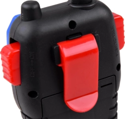 Zábavná dvojica detských vysielačiek na hranie vonku aj doma ponúka obojsmernú komunikáciu s dosahom až 35 m, jednoduché ovládanie tlačidlom PTT, klip na opasok pre voľné ruky a pružnú, pogumovanú anténu pre vyššiu odolnosť.