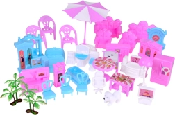 Súčasťou je všetko pre kompletne zariadený dom: posteľ, pohovky, kuchyňa, kúpeľňa, pracovný kútik aj záhradné sety – stačí rozbaliť a hrať sa.
