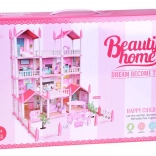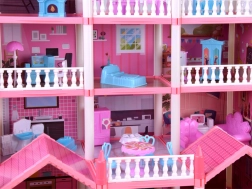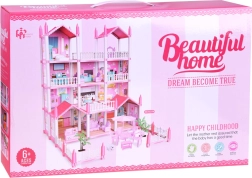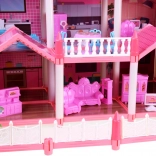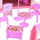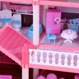 Táto pôvabná ružová vila ponúka deťom skutočne veľký priestor pre fantáziu: 10 detailne spracovaných izieb, balkóny a terasu, ktoré lákajú k hre na domácnosť, hotel alebo penzión. Konštrukčné prvky a nábytok sú z odolného plastu, zatiaľ čo steny, podlahy a strechy tvoria kartón s farebnou potlačou miestností – po zostavení pôsobí dom veľmi esteticky a útulne.