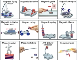 Vedecká magnetická sada 12v1. Je to kutilská sada pre každé dieťa, ktoré sa zaujíma o svet. Sada umožní vášmu dieťaťu naučiť sa, čo je magnetické pole, priťažlivosť a odpudivosť vďaka niekoľkým rôznym pokusom v sade.