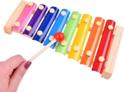V balení nájdete dve drevené paličky s pohodlnou dĺžkou pre detské ruky a ukážkové noty na obale, vďaka ktorým sa deti ľahko naučia svoje prvé melódie. Hra na xylofón podporuje sústredenie, koordináciu aj kreativitu.