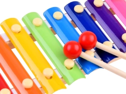 Dúha kovových lamiel umožní deťom zahrať jednoduché pesničky a trénovať sluch aj rytmus.