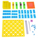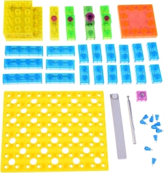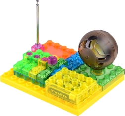 Stavebnica podporuje logické myslenie, jemnú motoriku aj kreativitu. Vďaka priehľadným a farebným dielom deti ľahko pochopia, ako spolu súčiastky v elektrickom obvode spolupracujú. Súčasťou je reproduktor, kovová teleskopická anténa, plastová základňa a ilustračný návod. Napájanie zabezpečujú 3× AA 1,5 V batérie (nie sú súčasťou balenia).