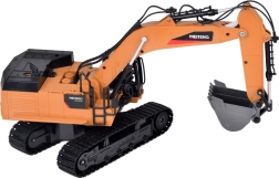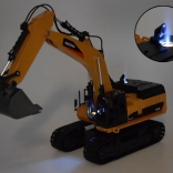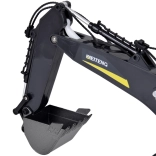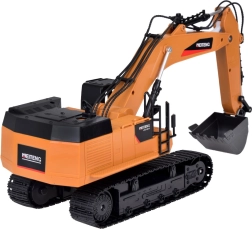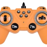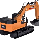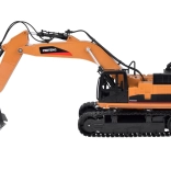 Diaľkové ovládanie na frekvencii 2,4 GHz je stabilné a bez rušenia, takže môžete riadiť jazdu vpred/vzad, otáčanie na mieste, zdvíhanie ramena aj prácu lyžice zvlášť. Nechýba tlačidlo vypnutia zvuku, funkcia DEMO ani klaksón.