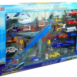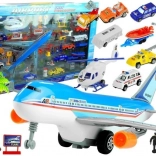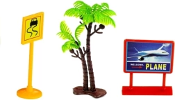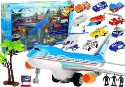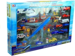 Tento detailne spracovaný letiskový playset poskytne deťom hodiny zábavy. Nájdete v ňom všetko potrebné na vytvorenie vlastného letiska: od runway podložky cez veľký pasažiersky lietadlo a helikoptéru až po autobusy, policajné a záchranné vozidlá, hasičov s výsuvným rebríkom a pracovnú techniku. Doplnky ako palmy, značky, závory a lampy umocnia realistickú atmosféru.