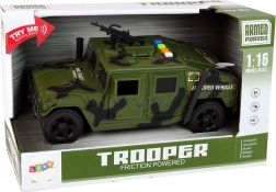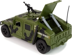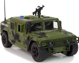 Ak sa vaše dieťa zaujíma o vojenskú tematiku a najmä o vozidlá, toto vojenské auto prebudí jeho vášeň a umožní mu objavovať tajomstvá vojenského sveta. Vojenské vozidlo je perfektným prírastkom do zbierky každého malého milovníka armády a vojenských motívov. Je navrhnuté tak, aby oslovilo malých vojakov, ktorí obdivujú toto hrdinské, no zároveň nebezpečné povolanie. S vojnovými farbami a širokou karosériou sa podobá skutočnému vojenskému vozidlu, vrátane pištole na streche.