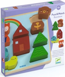 Objavte zábavné drevené puzzle a stavebnicu v jednom – DJECO Puzz & Match Dúha. Dva dieliky tvoria krásne zvieratká a farebné vzory, ktoré deti nadchnú. Vďaka širokým dielikom sa ľahko uchopujú, pevne zapadajú do dreveného rámu a rozvíjajú jemnú motoriku, fantáziu aj koordináciu ruka–oko. Vyrobené z FSC certifikovaného dreva, vhodné od 18 mesiacov.