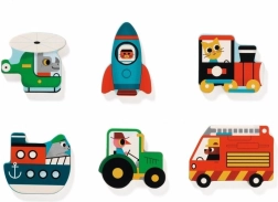 Dieliky s dopravnými prostriedkami možno použiť aj mimo puzzle ako figúrky na voľnú hru a rozvoj predstavivosti.