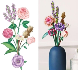 - Podrobný návod: Súčasťou stavebnice je farebný papierový návod, vďaka ktorému je skladanie jednoduché a zábavné. Ukladanie kytice je zábavná činnosť, ktorá nikdy neomrzí, a hotovú kyticu môžete vystaviť ako dekoráciu.